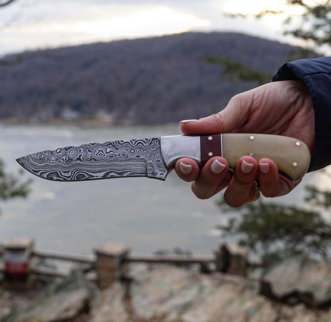 9" Fixed Blade Hand Forged Damacsus Hunting Skinning Knife With Cover
